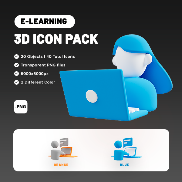 A Set of E-learning and Online Education 3D icons