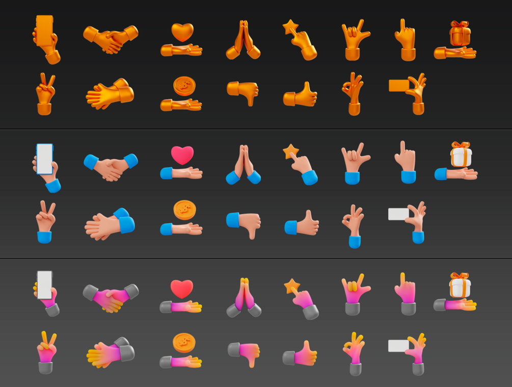 A Set of Hand Gestures 3D icon