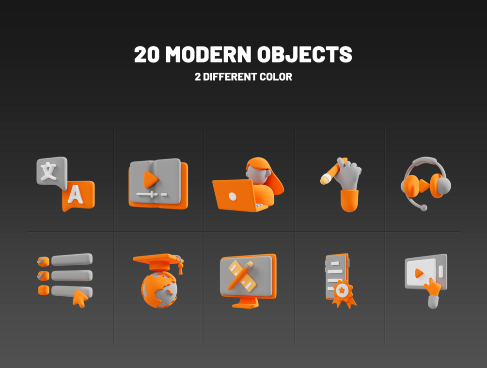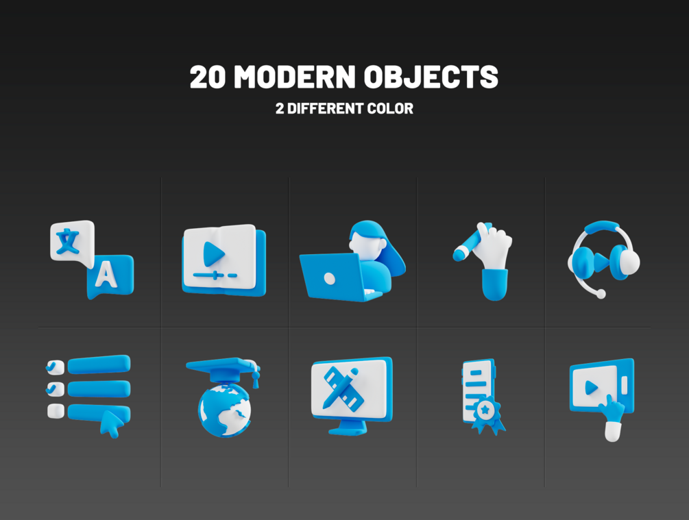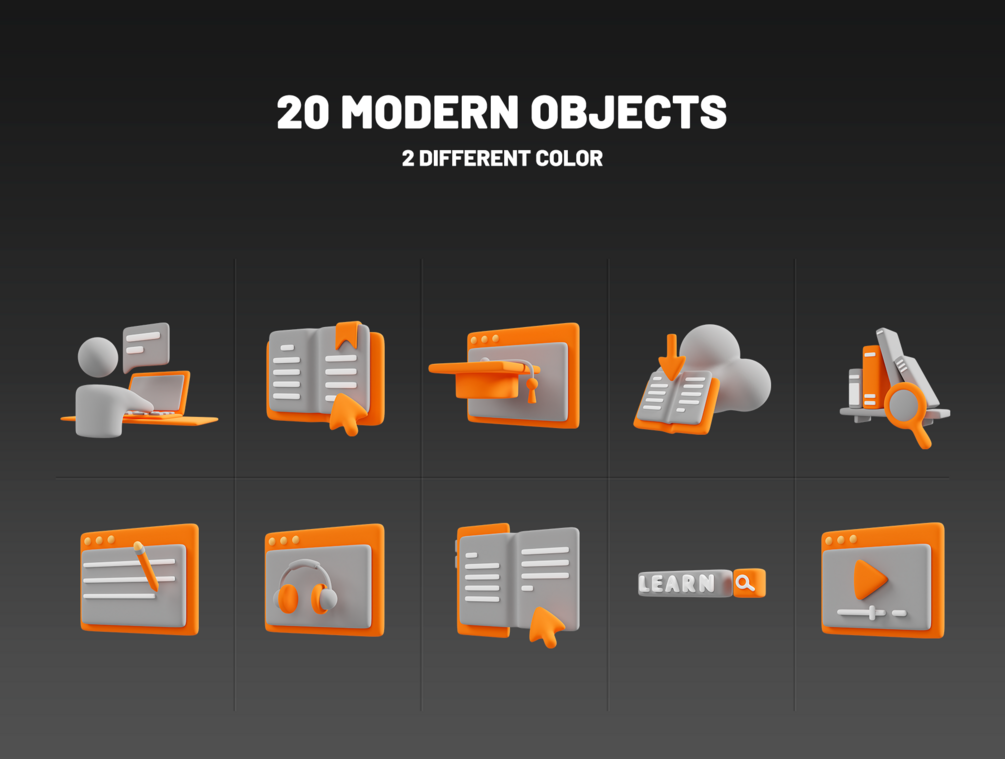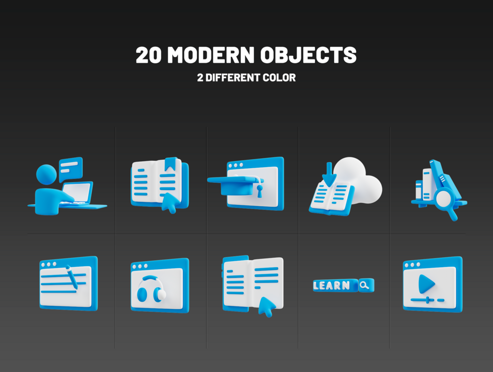 3D icons related to online learning and education. Includes symbols such as media devices and online education.3D rendering. 3D illustration.