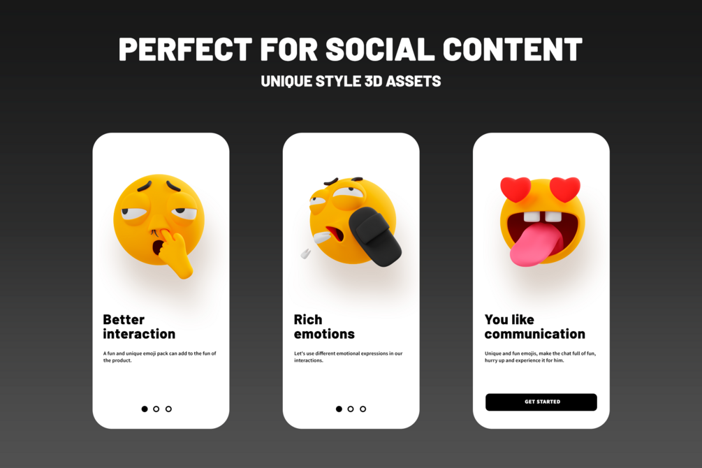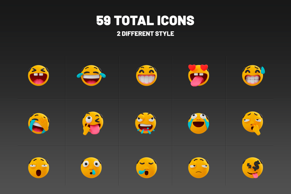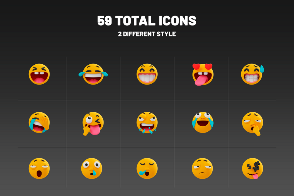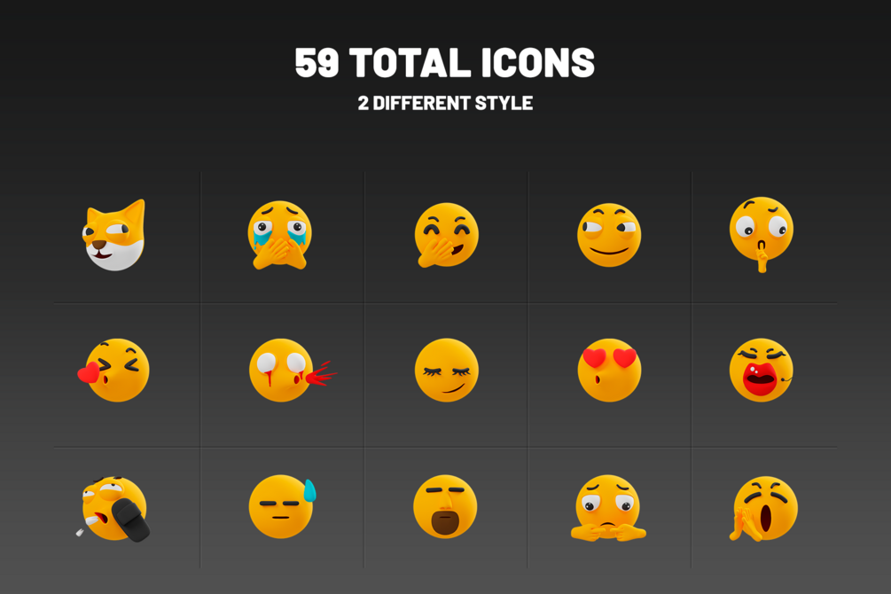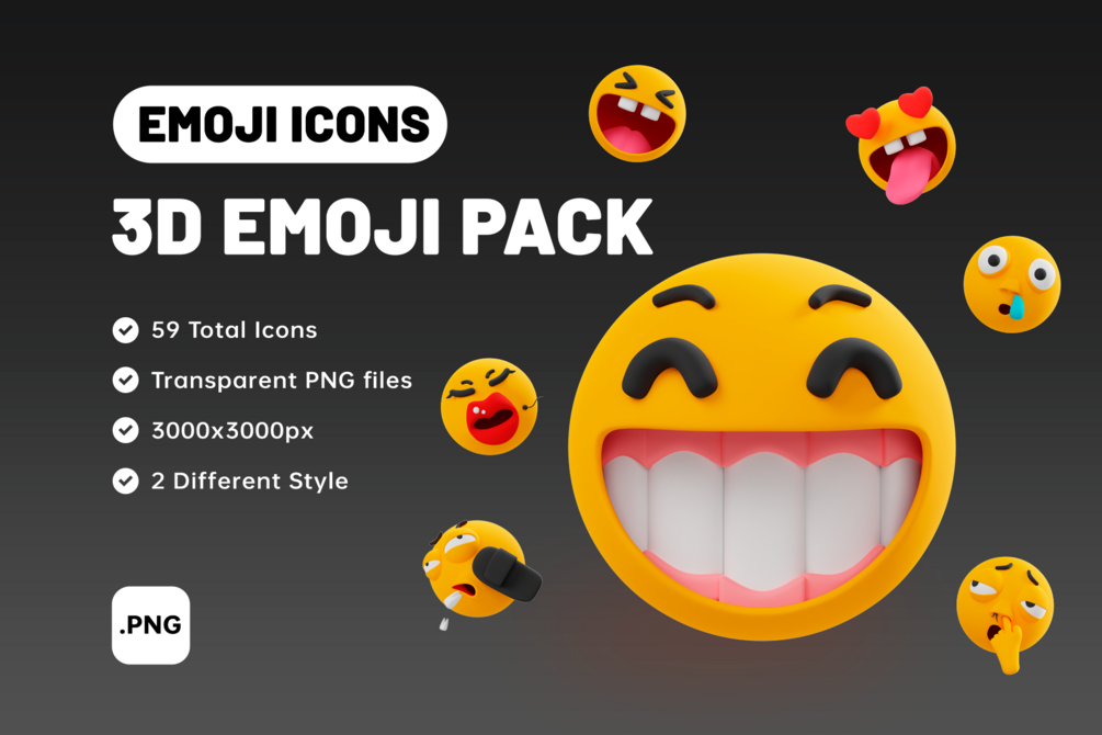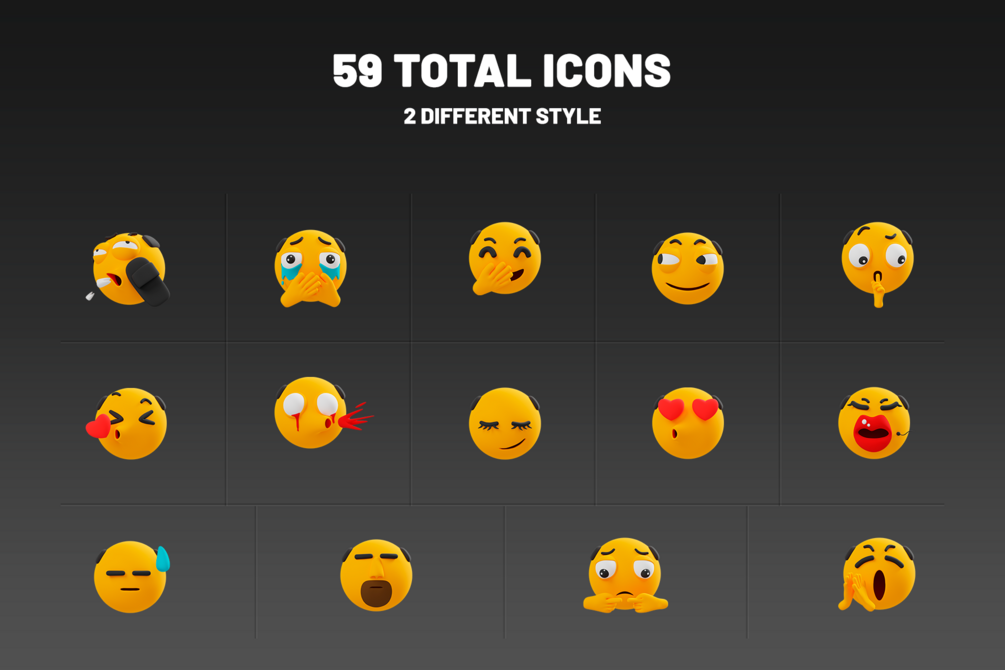 A unique set of 3d emojis that add emotion to your project. High resolution png format images that can be easily applied in any color.